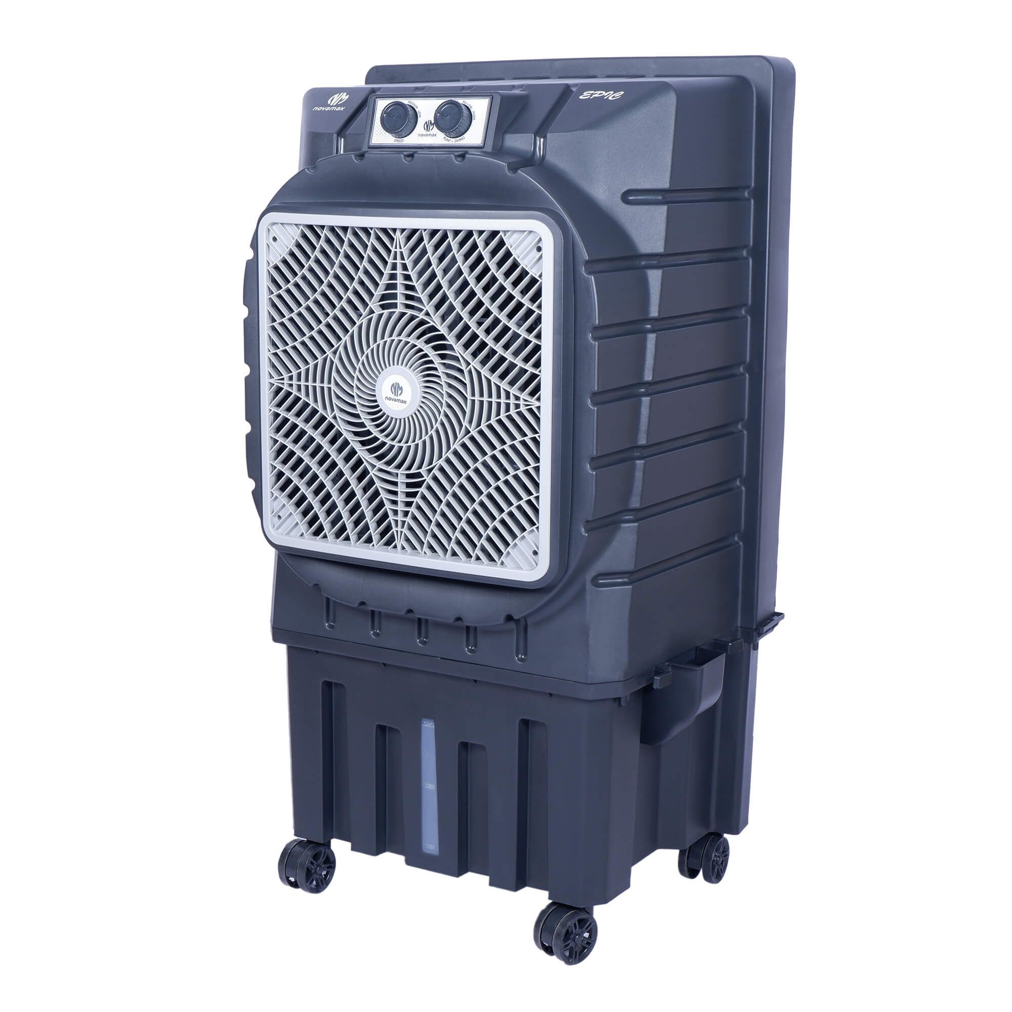 Introducing the Novamax EPIC 75 L Desert Air Cooler in Grey with Honeycomb & Auto Swing Technology.